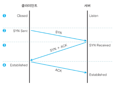 이때 송수신 프로세스(서버와 클라이언트) 간에 연결을 맺는 작업을 3way handshake라고 하며,