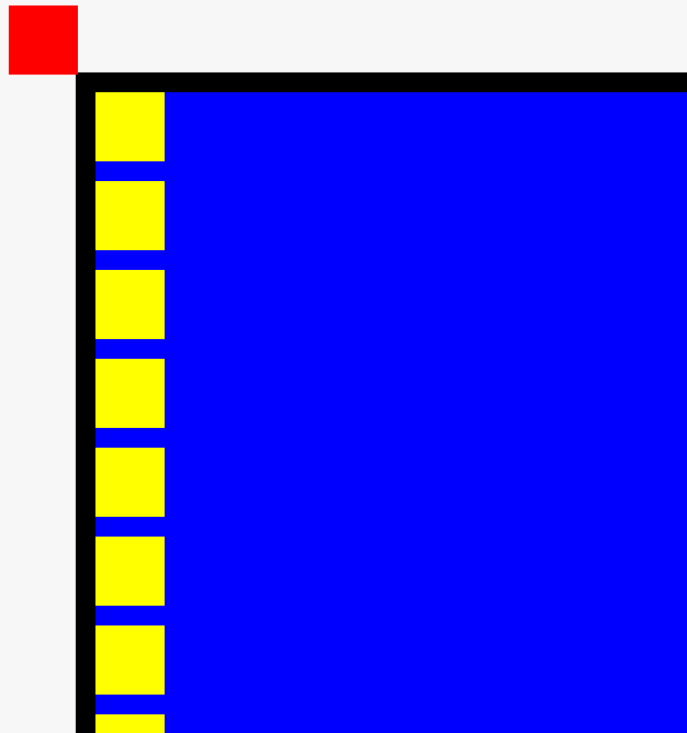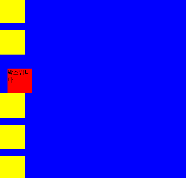 위의 css코드에서 파란색 박스를 top,left 로부터 40px씩 멀어지게 했다.
