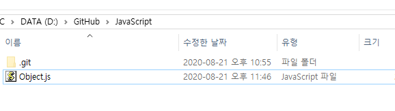 그리고 생성된 폴더 안에 '.git' 이라는 폴더가 있는 것도 확인할 수 있다.