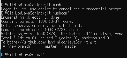만약 이미 로컬 저장소와 깃허브 저장소가 연결되어있다면