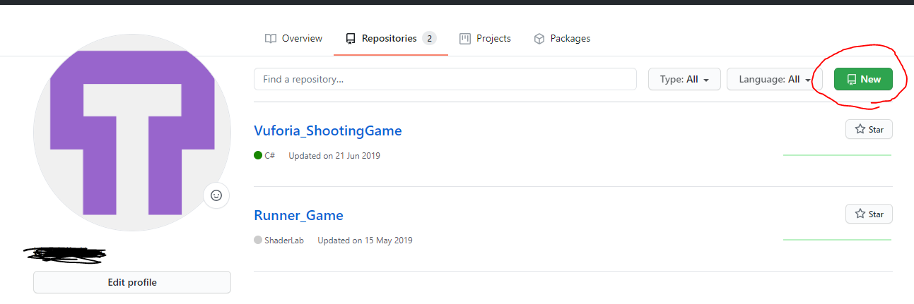 3. Your repositories 접속 후, 우측에 'New' 클릭
